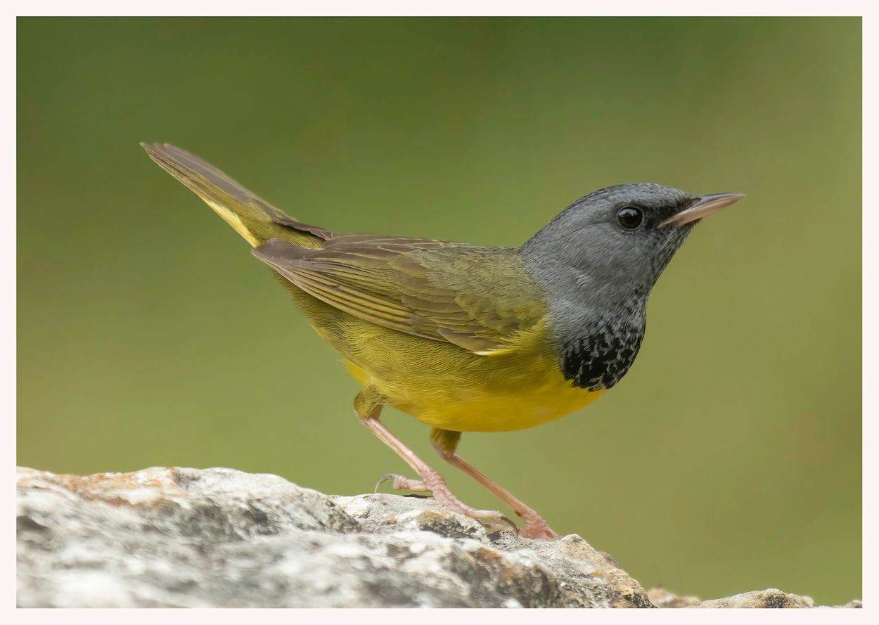 The Mourning Warbler, while a common warbler, is seldom seen, usually hiding in its habitat.